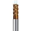 Geometrie 40/42°, odlehčení nástroje, nestejná zubová rozteč, stopka válcová, rohové sražení, houževnatý povlak proti vyštípnutí nástroje, možnost vrtání, zajíždění po rampě, trochoidní frézování, šroubovicové interpolace. Fréza má vnitřní chlazení pro rychlý odvod špon.
