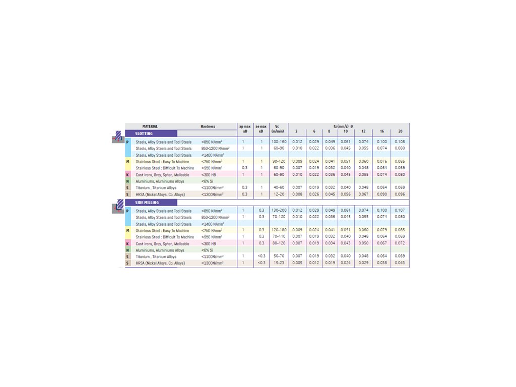 Geometrie břitu 41/42/43°, houževnatý povlak proti vyštípnutí nástroje, sražení na břitu. Nestejná zubová rozteč. Možnost vrtání, drážkování, zajíždění po rampě, šroubovicová interpolace. Minimální vibrace díky proměnné geometrii, velmi rychlé zavrtání.