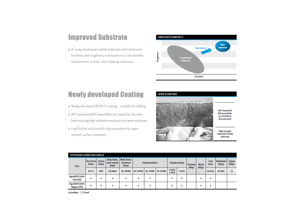Velmi výkonný krátký tuhý tvrdokovový vrták ze speciálního slinutého karbidu, který si japonký výrobce Nachi sámi vyrábí a všechny procesy má tak plně pod kontrolou.  Jemnozrnná struktura tvrdokovu společně s navrženou geometrií a speciálním povlakem AlCr a AlTi zajišťují velmi dlouhou živonost nástroje a velmi přesné otvory.  Tento nástroj vám zajistí vyšší ziskovost při vrtání požadovaných otvorů. Je vhodný na všechny typy ocelí včetně materiálu jako je Hardox 400, Hardox 450 nebo Hardox 500. Vhodný je také pro vrtání nerezových ocelí (zde jsou nutné výjezdy v případě hlubších otvorů), litiny a dalších materiálů.  Tyto vrtáky vám zajistí stabilitu vrtacího procesu, přesnost a preciznost.  Nasazením těchto nástrojů nejen že zvýšíte svoji produktivitu, ale také budete před konkurencí.