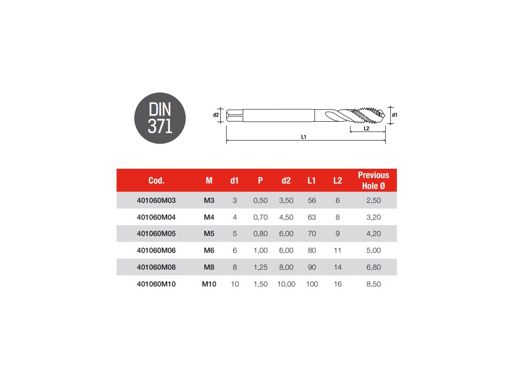 Závitník spirálový M8, ISO2/6H, DIN371 C,HSS-E N R40 HVA
